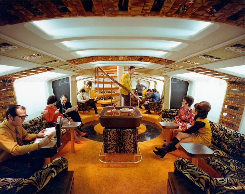 In the 1960s, Boeing produced a mock-up interior of the then new 747 that featured a "Tiger Lounge" in the lower section of the airplane below the main passenger cabin. Lounge seats were covered in animal-print. However, airline customers preferred to use the space for extra cargo and an actual "Tiger Lounge" was never installed on a 747.