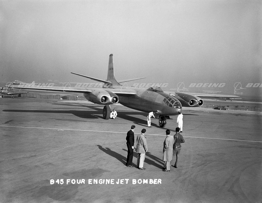 Rated as a light bomber by modern-day standards, the B-45 Tornado was the first four-jet aircraft to drop an atom bomb and the first to be refueled in midair.