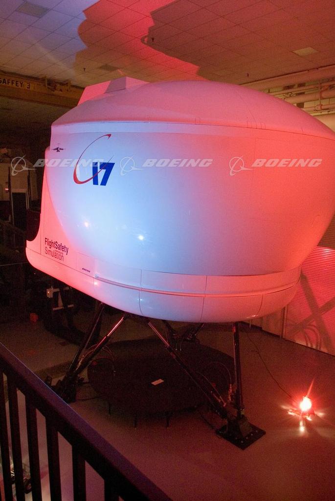 The all-electric C-17 full-flight simulator, removes hydraulic hoses used in previous simulators. The modern simulator has a state-of-the-art visual system, giving pilots the most realistic experience possible before they set foot in a real aircraft. Â