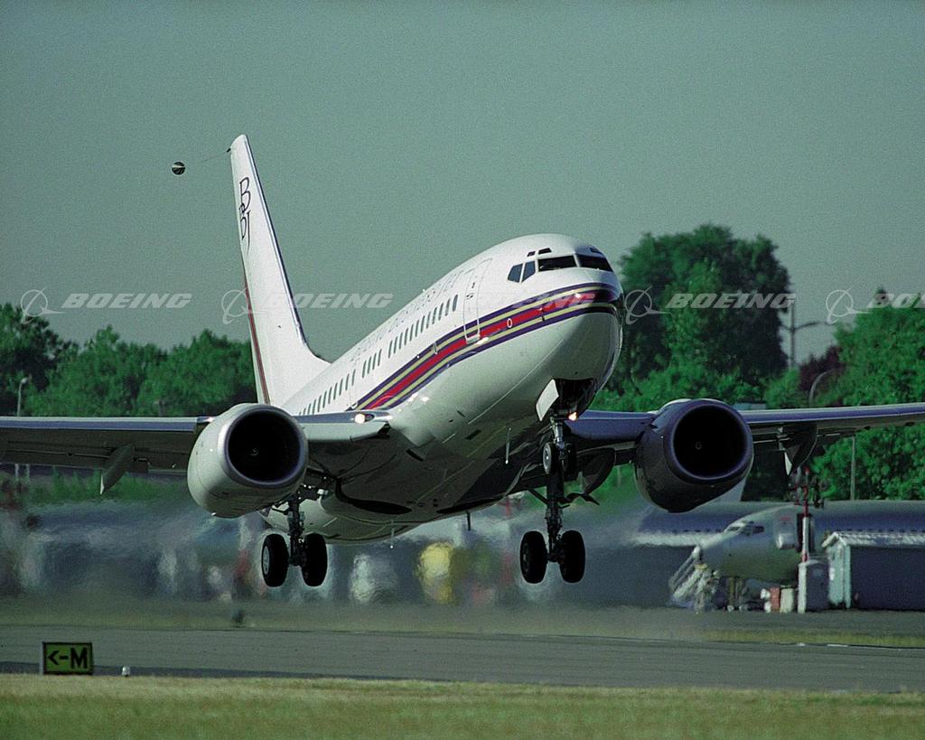 Renton, September 4, 1998 - The new Boeing Business Jet (BBJ) - a high-performance derivative of the Next-Generation 737-700 - made its successful first flight today with Boeing Capts. Mike Hewett and Mike Carriker at the controls. The airplane took off from Renton Municipal Airport in Renton, Wash., at 9:13 a.m. PDT. The BBJ has a range of more than 6,000 nautical miles and boasts an 807-square-foot cabin, nearly three times larger than existing long-range business jets. Interiors can be configured to accommodate a variety of executive and VIP layouts.