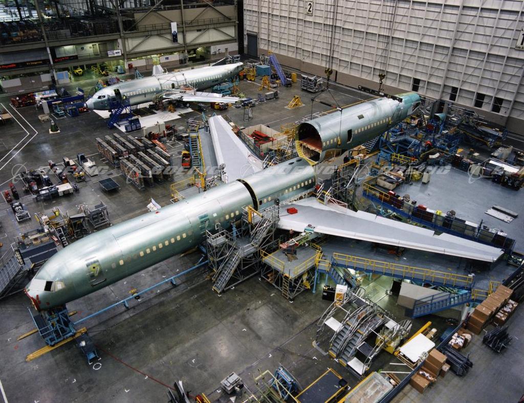 Factory Worker Accesses a 737 Tail Panel with an Automaic Lift