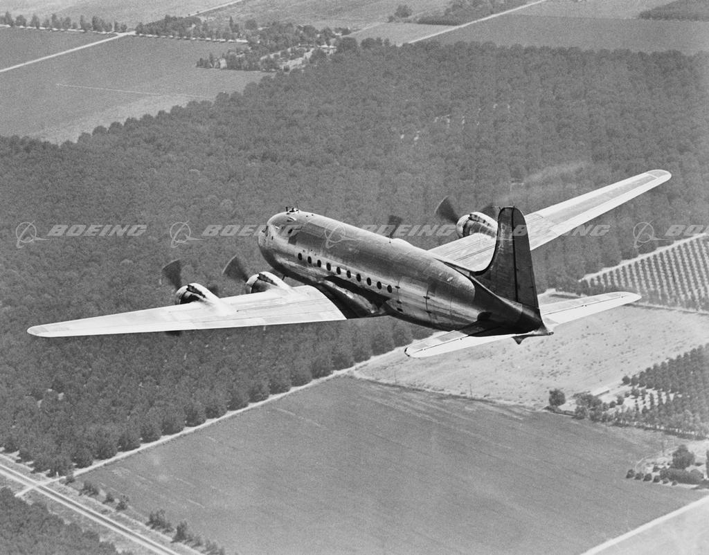 DC-1 in Flight Above Rural Area