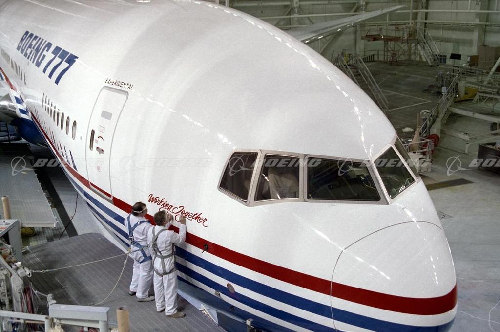 New Boeing Livery is Applied to a 777-200LR at the Everett Paint Hangar