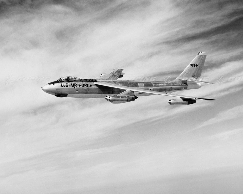 B-47E US Air Force in flight, nose left with clouds (tail 36244)