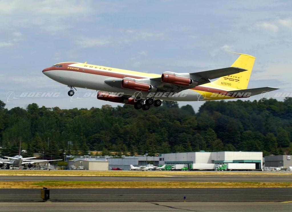 The historic Boeing 367-80, which helped usher in the modern era of jet-engine powered commercial airplanes, departed Seattle on Aug. 24, 2003 on a journey to its new home at the Smithsonian Institution's National Air and Space Museum. Nicknamed the "Dash 80," the airplane first flew on July 15, 1954, and was the prototype for the Boeing 707, the world's first successful commercial airplane with jet engines, and the KC-135 aerial refueling aircraft. The Dash 80 served 18 years as a flying test-laboratory before being donated to the Smithsonian in 1972. It was in storage for 16 years before Boeing and the Smithsonian agreed to its restoration.