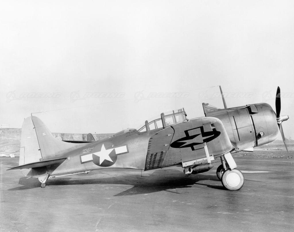 The SBD Dauntless was a two-place, low-wing Navy scout bomber, powered by a single Wright R1820, 1200-horsepower engine. The Dauntless became a mainstay of the Navy's air fleet in the Pacific, with the lowest loss ratio of any U.S. carrier aircraft. A total of 5396 SBDs was delivered between the first delivery in 1940 and the end of produciton in 1944.