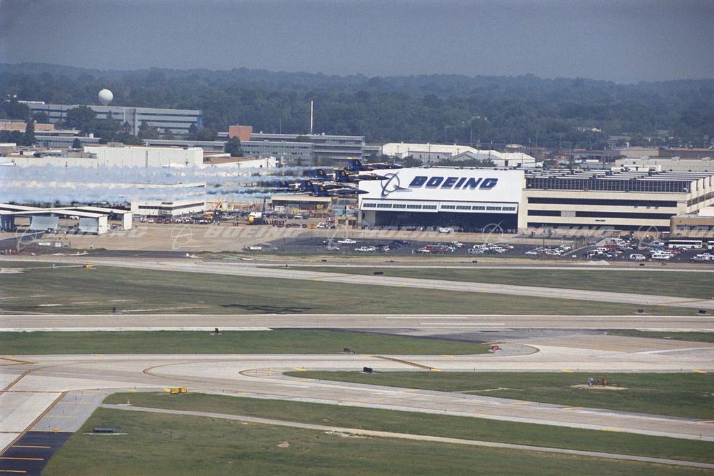 Blue Angels F/A-18A Hornets Perform a Delta Pass Over Boeing in St. Louis