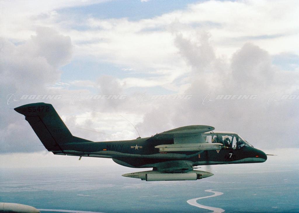The OV-10 Bronco, a rugged, maneuverable, twin-turboprop, multimission aircraft, was designed and built by North American at Columbus, Ohio. The Bronco complemented the performance requirements between jets and helicopters. Faster and more tactically versatile than helicopters, yet slower and more maneuverable than jets, the Bronco utilized tactics not possible with either. The OV-10D night observation system (NOS) featured a unique night observation and target marking system that included forward-looking infrared (FLIR) and laser designator/ranger. With uprated 1040 SHP turboprop engines and fiberglass propellers, NOS provided greater range, improved performance and greater survivability.