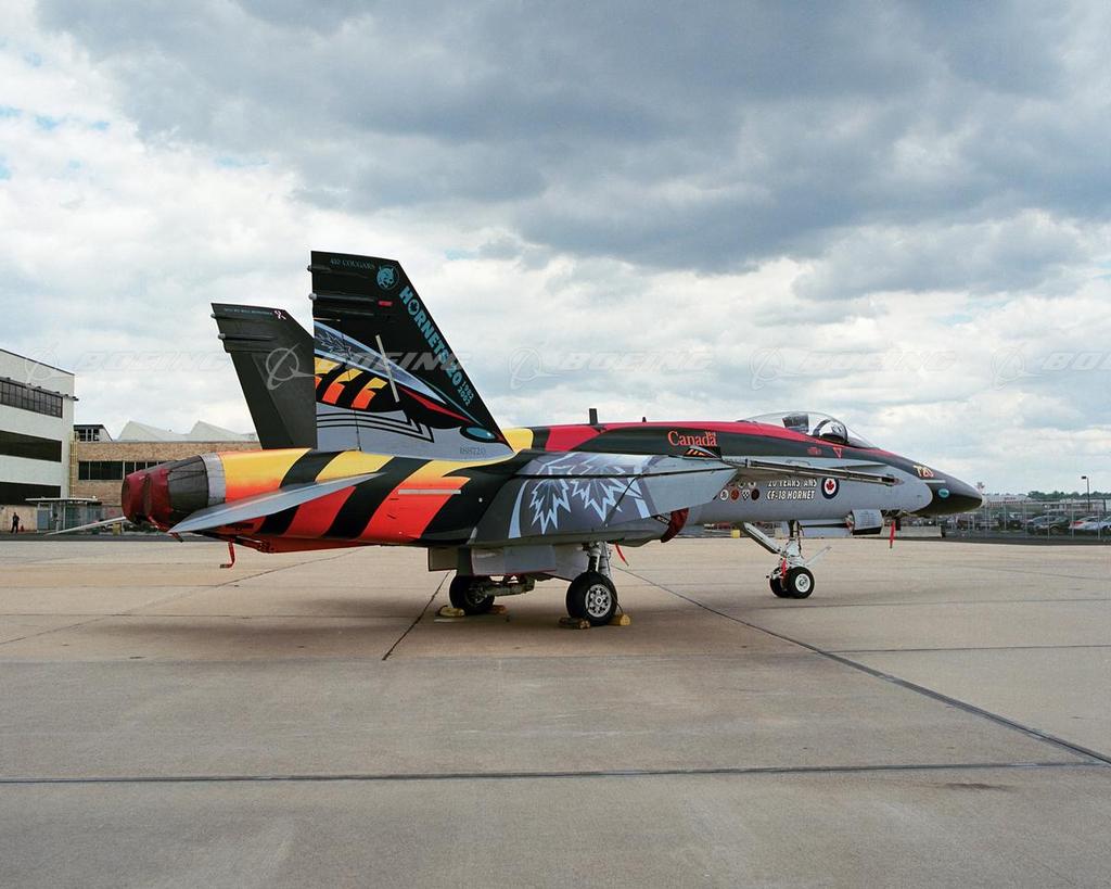 CF-18 Hornets celebrate 20 years of service in the Canadian Air Force. In honor of this milestone, a specially paointed Hornet appeared in 18 air shows across North America.