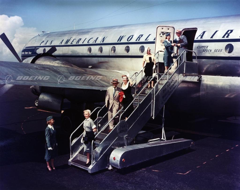 The Boeing Model 377 Stratocruiser was a propeller-powered luxury airliner. It was both the last of its kind and the first of its kind, and it prepared airlines and passengers for the commercial jet airliners of today. The "First Lady of the Airways" was the elegant civilian offspring of the austere C-97 military transport. It was as tough as a military plane, but as comfortable as a first-class hotel.