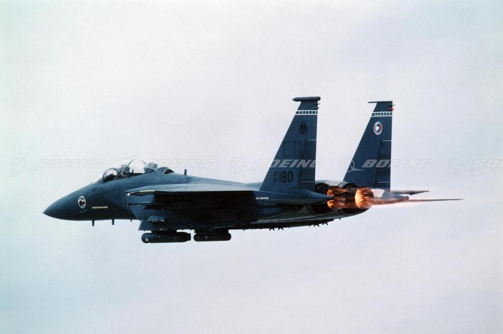 The F-15E, which flew for the first time Dec. 11, 1986, is a two-seat dual-role fighter capable of flying both air-to-air and air-to-ground, long-range interdiction missions day or night, good weather or bad. The F-15E is acapble of attacking high-value targets such as communications centers, roads, bridges and airfields while armed with self-defense air-to-air weapons and an internal electronic jamming system for defense against ground threats.