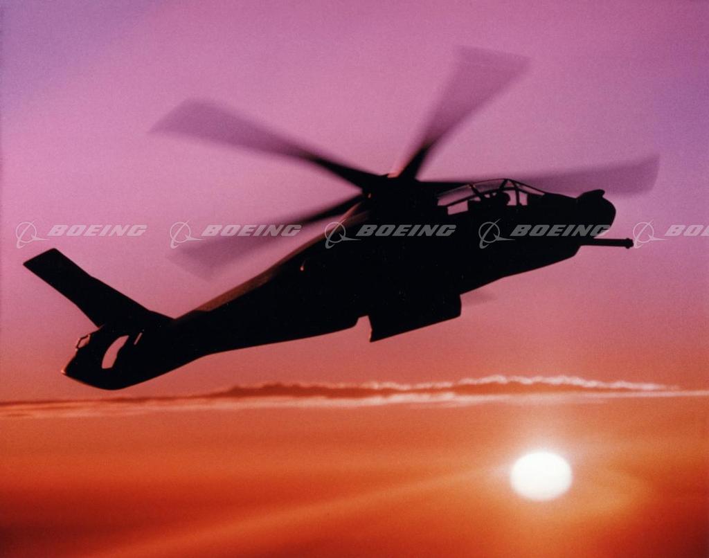 AH-64D Apache Longbow in Flight at Sunset with RAH-66 Commanche