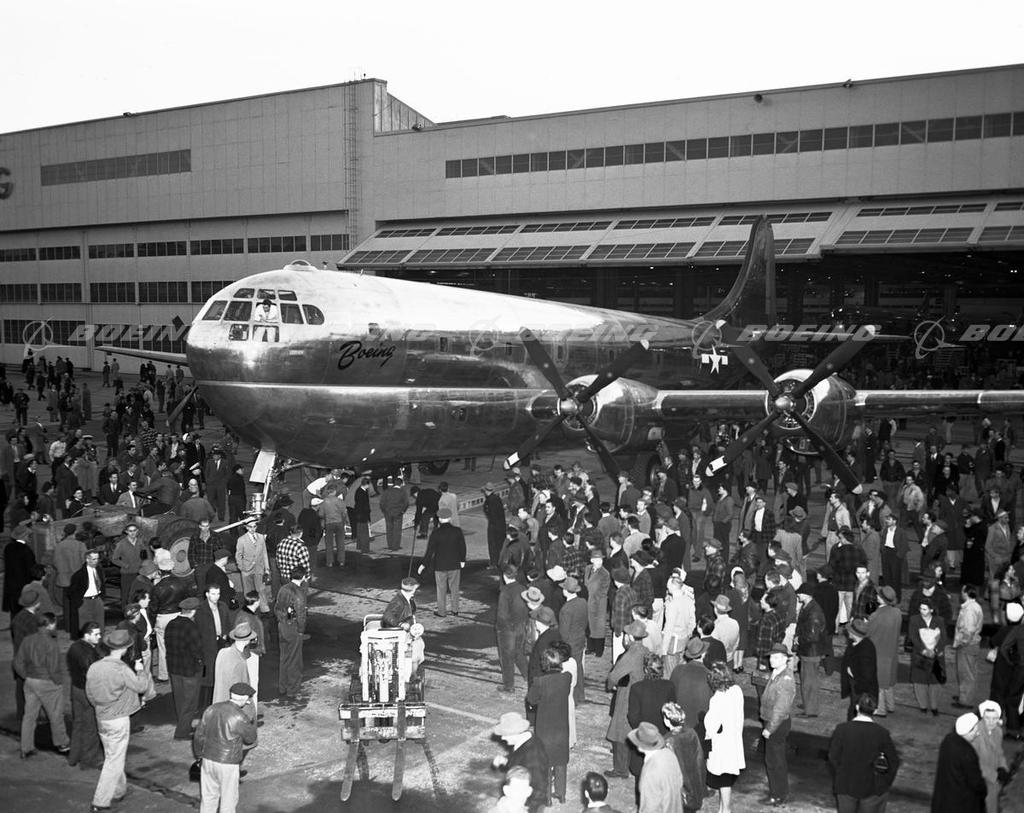 On Dec. 23, 1946, the first production-model Boeing Stratofreighter rolled out of Plant II. It was the first post-war inauguration of a new airplane.