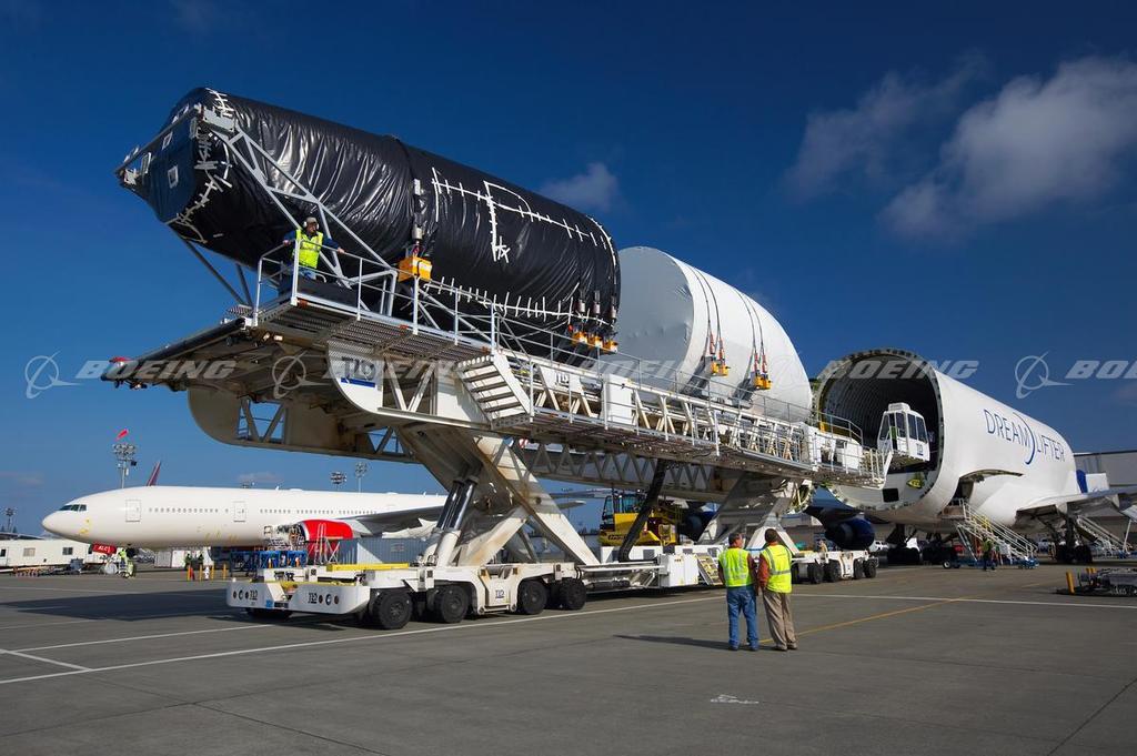 Dreamlifter Unloads Dreamliner Fuselage Sections