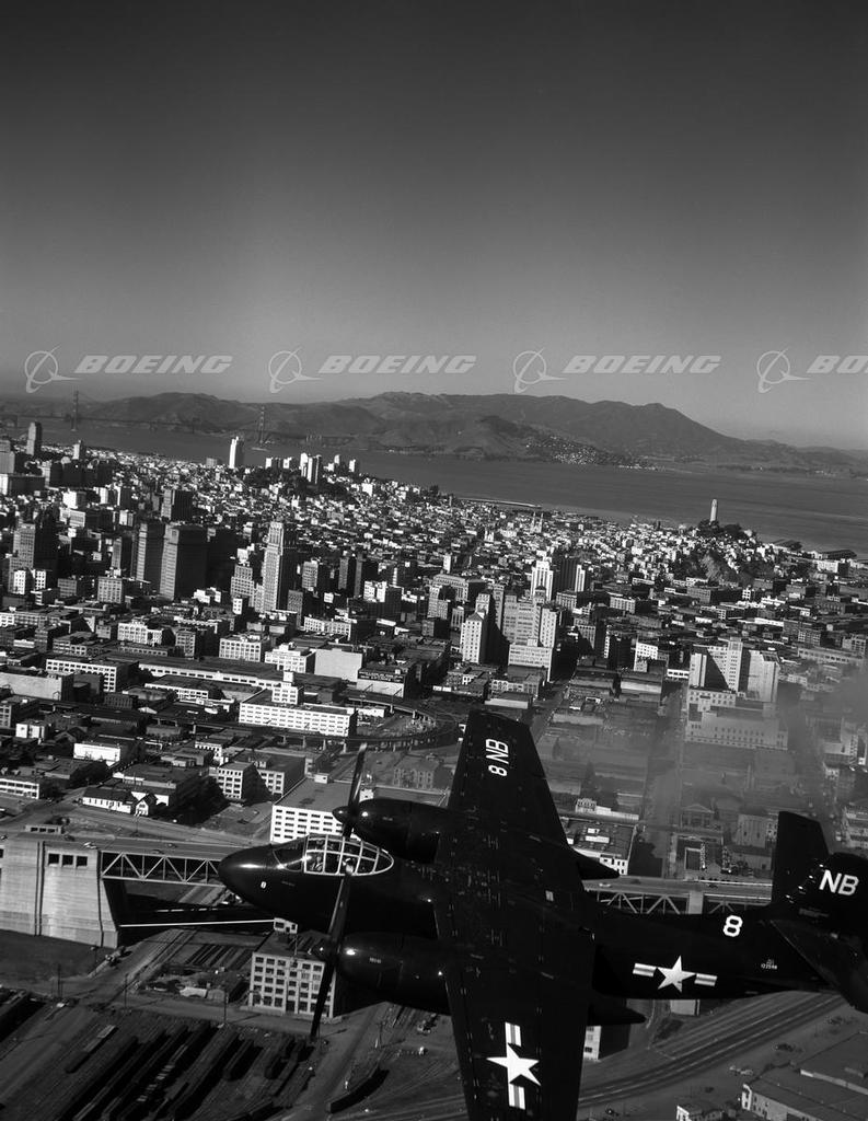 AJ-1 Savage in Flight over San Francisco