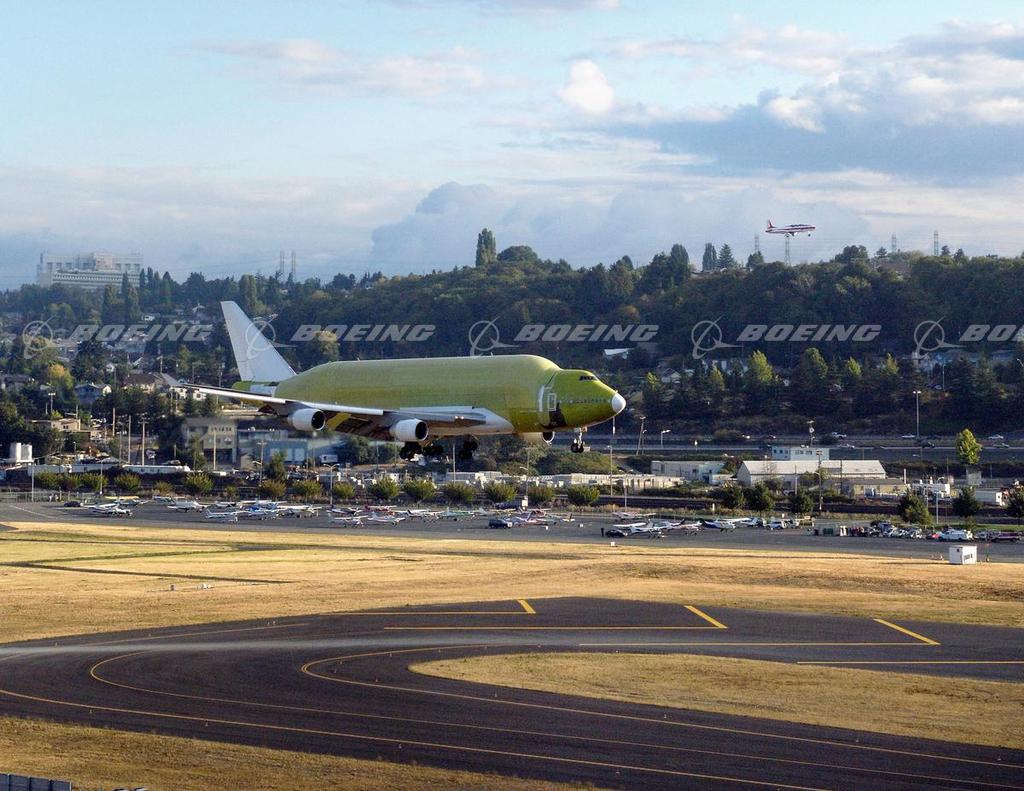 First 747-400 LCF Lands at Boeing Field