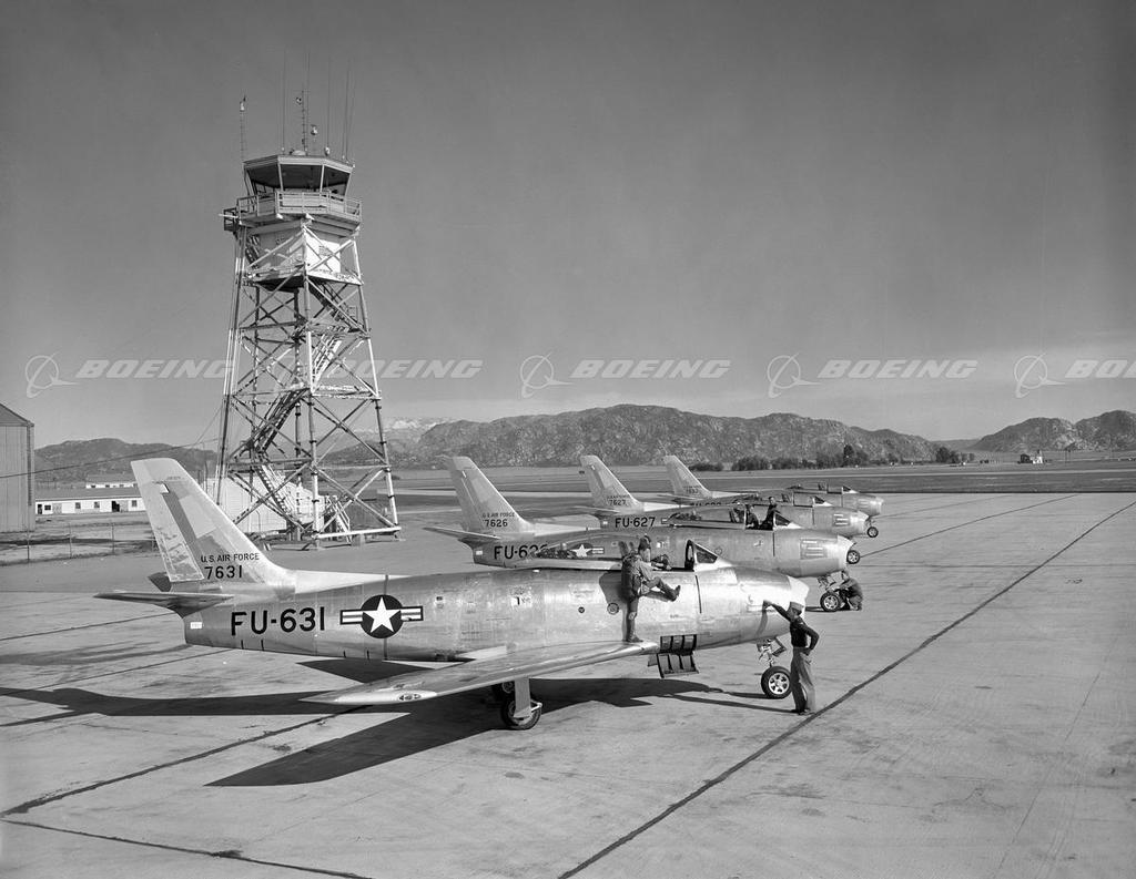 More than 6,000 F-86s were manufactured by North American's Los Angeles, CA, and Columbus, Ohio, divisions. F-86As were day fighters or fighter bombers, designed to destroy hostile aircraft in flight or on the ground. All were rated in the 650-mph class with a 600-mile combat radius and a service ceiling of over 45,000 feet.