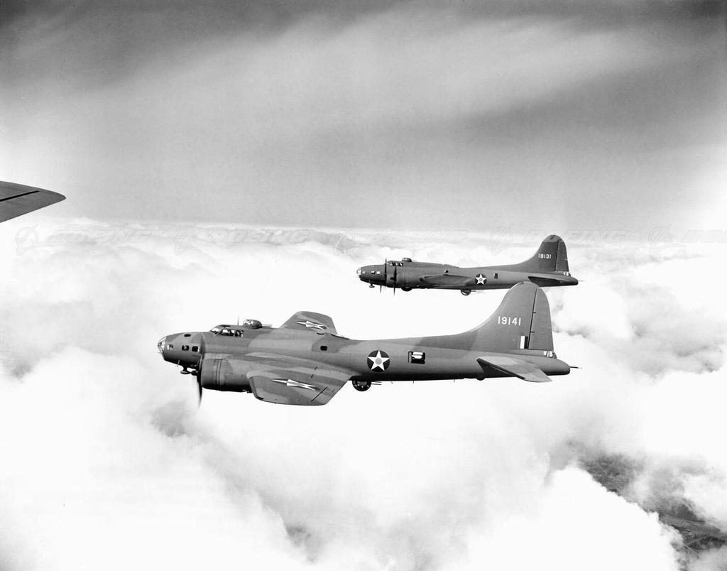 Two B-17E Flying Fortresses in the Clouds