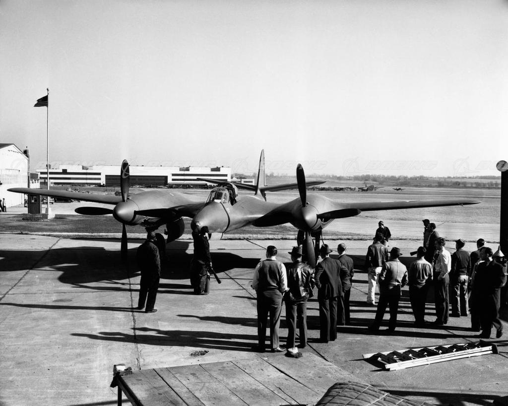 The XP-67 was McDonnell's only propeller-powered fighter. On Aug. 14, 1941, the U.S. Army Air Forces placed its first order with the tiny McDonnell Aircraft Corp. for two prototypes of a novel, twin-engine, long-range fighter with a pressurized cabin. Engineers tried to improve the airplane's aerodynamics by merging the center fuselage with rear portions of the engine nacelles. This resulted in the XP-67's unique bat-like shape. The turbo-supercharged 12-cylinder, inverted-V, liquid-cooled engines would be housed in long nacelles and would drive four-blade propellers in opposite directions. They were to maximize the use of exhaust to increase engine thrust. The XP-67 was completed in St. Louis, Mo., in December 1943, but the temperamental engines caused the airplane's first flight to last only six minutes. Problems continued with the engines, and the XP-67's top speed was 200 mph slower than required. The second prototype was never finished.