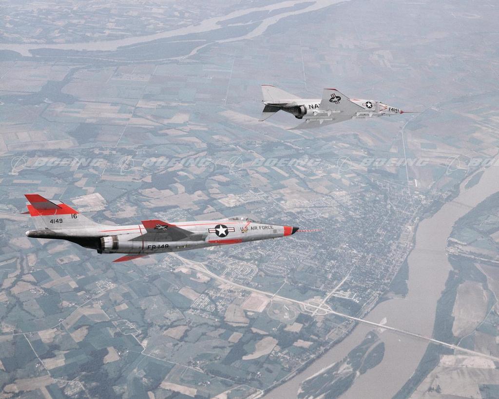 YRF-101A Voodoo with XF4H-1 Phantom in Flight Over St. Louis, MO