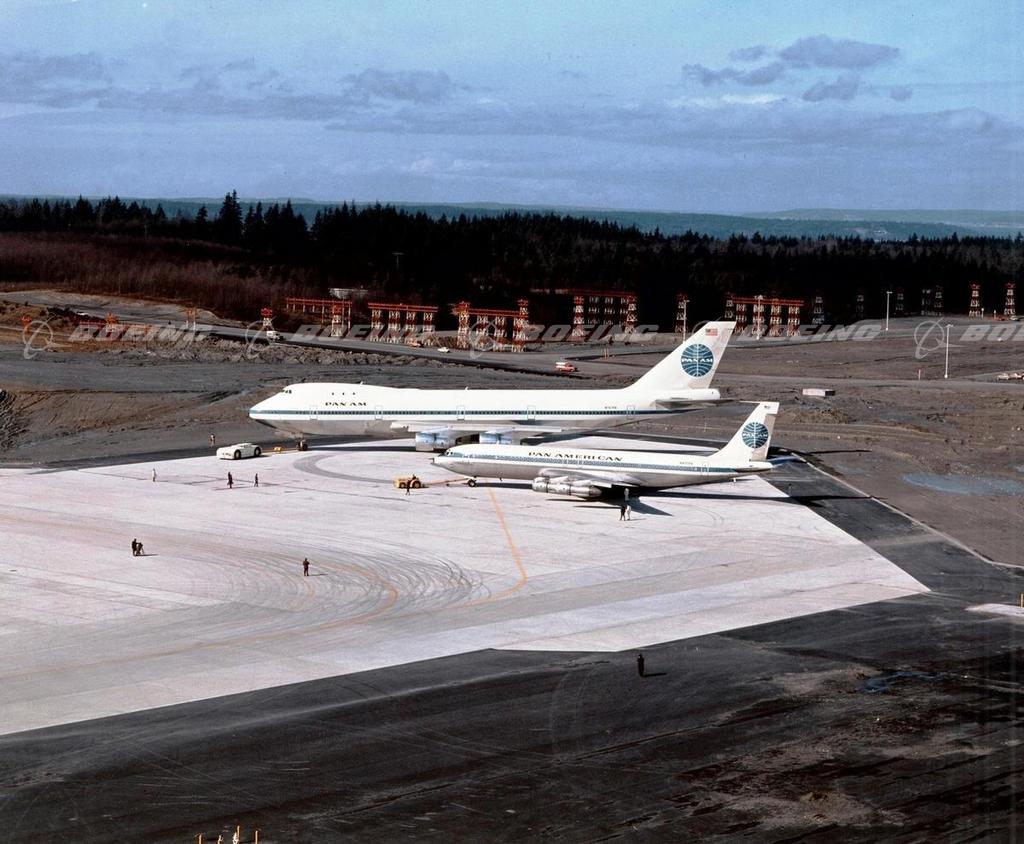 The Pan Am 747 in background. The mid-1960s saw the development and introduction of many new jetliners. None, however, has matched the dramatic impact of the 747. Increasingly crowded skies and the availability of large-thrust engines added to the incentive for creating the giant 747. It all began with the 747-100, the first in the 747 Classics series, which also includes the -200 and -300 models.