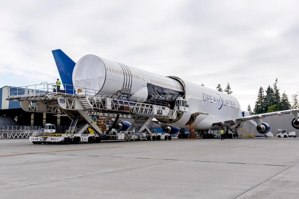 Boeing Dreamlifter Unloading 787 Middle Body Sections