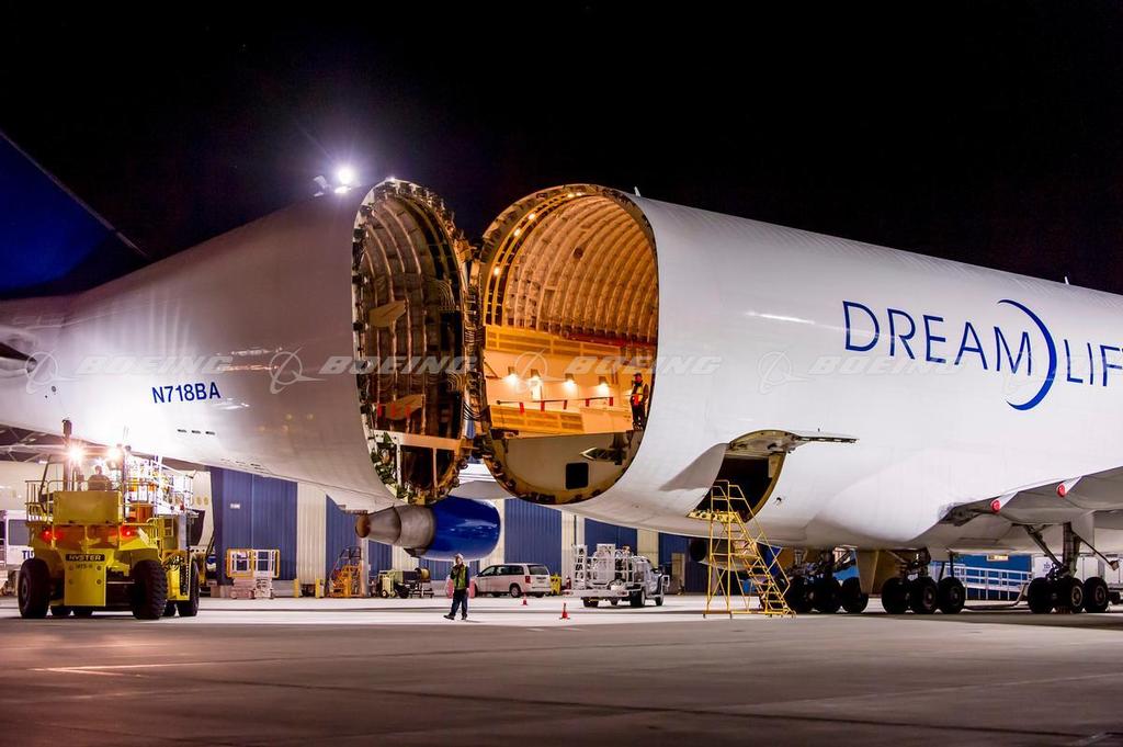 Boeing Dreamlifter Unloading 787 Forward and Aft Sections