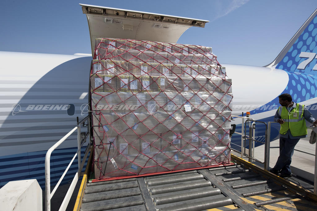 The 777 Freighter can fly 4,970 nautical miles (9,200 kms) and carry a payload of 224,900 pounds (102,010 kg). The airplane's long range translates into significant savings for operators as fewer stops reduce landing fees, congestion, cargo handling costs and delivery times.