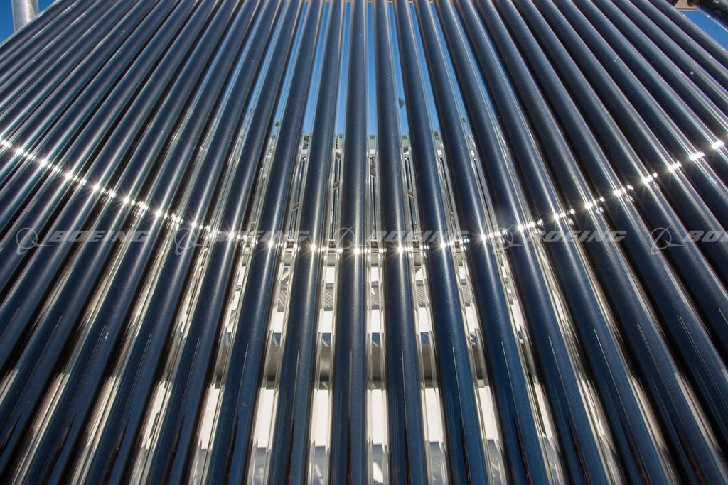 To receive the LEED Silver certification, the building was designed to include numerous large windows, which are not commonly used in paint facilities; a rainwater collection system; recycled and salvaged building materials and enhanced environmental controls. But what makes the building stand out are the 3,600 rooftop solar tubes that provide heating for a portion of the paint operations. This addition also makes it the first Boeing paint facility to be partially heated by solar energy. Located on the roof of the building, thousands of solar tubes collect energy from the sun, which is used to heat water that is piped to the curing process.
