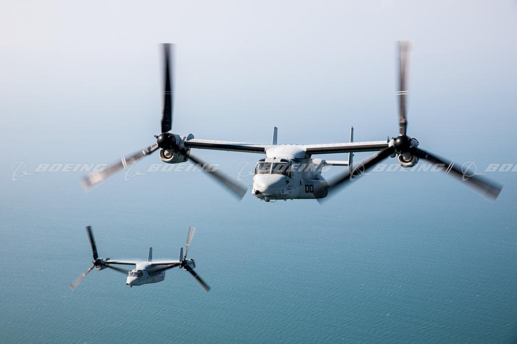 The V-22 Osprey is a joint service multi-role combat aircraft utilizing tiltrotor technology to combine the vertical performance of a helicopter with the speed and range of a fixed wing aircraft. The V-22 Osprey can carry 24 combat troops, or up to 20,000 pounds of internal cargo or 15,000 pounds of external cargo, at twice the speed of a helicopter. Boeing Rotorcraft Systems is responsible for the V-22 Osprey fuselage and all subsystems, digital avionics, and fly-by-wire flight-control systems. Boeing partner Bell Helicopter Textron, Inc., is responsible for the V-22 wing, transmissions, empennage, rotor systems and engine installation.