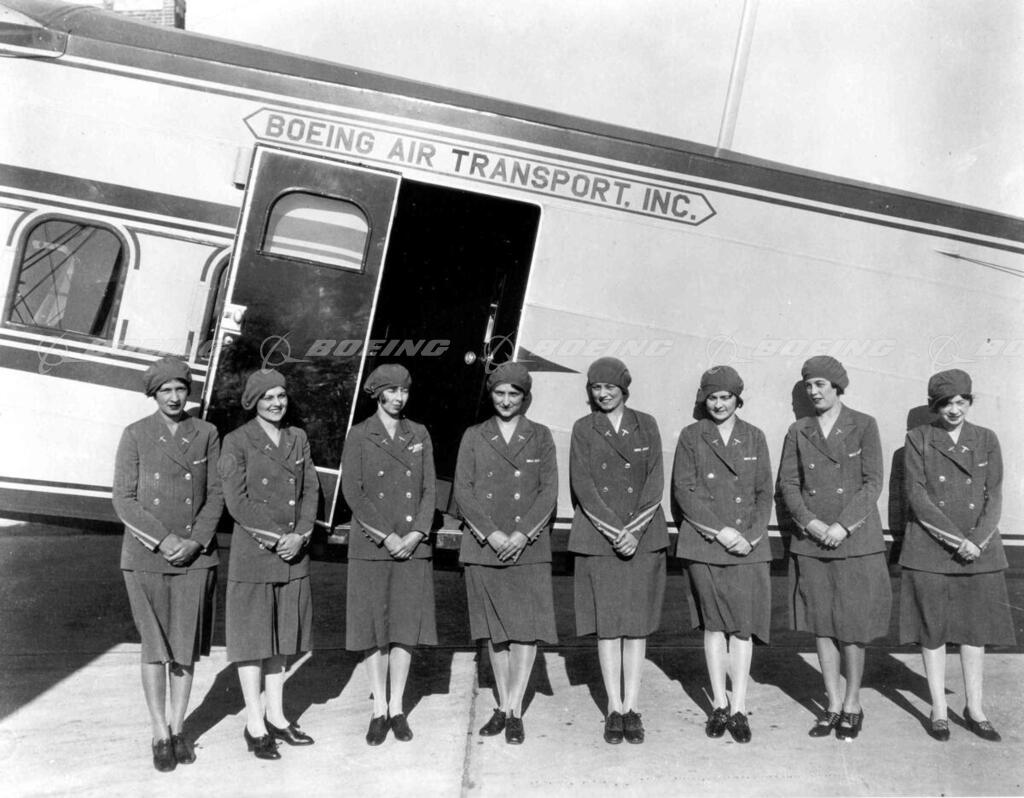 Ellen Church, a registered nurse, convinced Boeing managers that women could work as stewards, so nurses serving aboard the Model 80A became aviation’s first female flight attendants. They earned $125 for flying 100 hours a month.