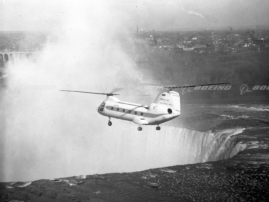 Vertol Model 107 over Niagra Falls on Test Flight