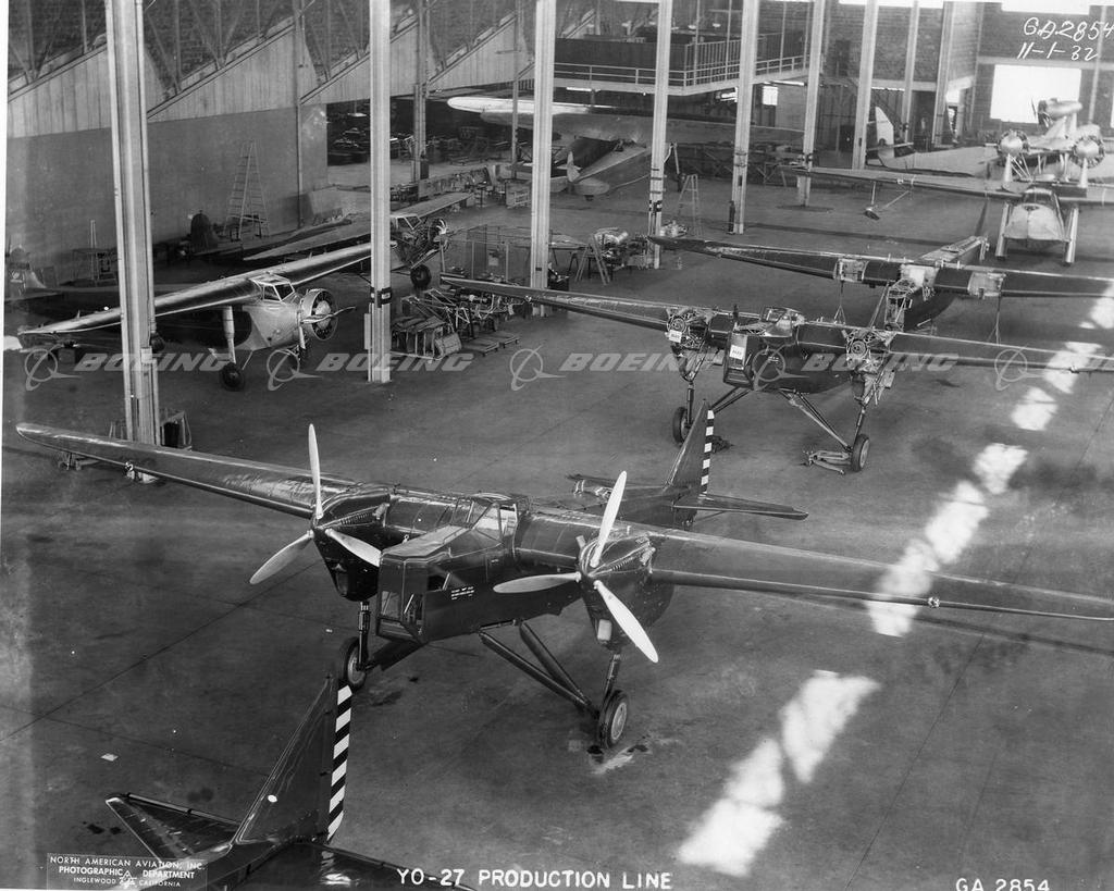 The YO-27 bomber prototype produced by the General Aviation Corporation was derived from the Fokker O-27 observation aircraft. Seven aircraft were produced at the factory in Dundalk, Maryland. The YO-27 offered the first electrically powered retractable landing gear fitted to a USAAC bomber.