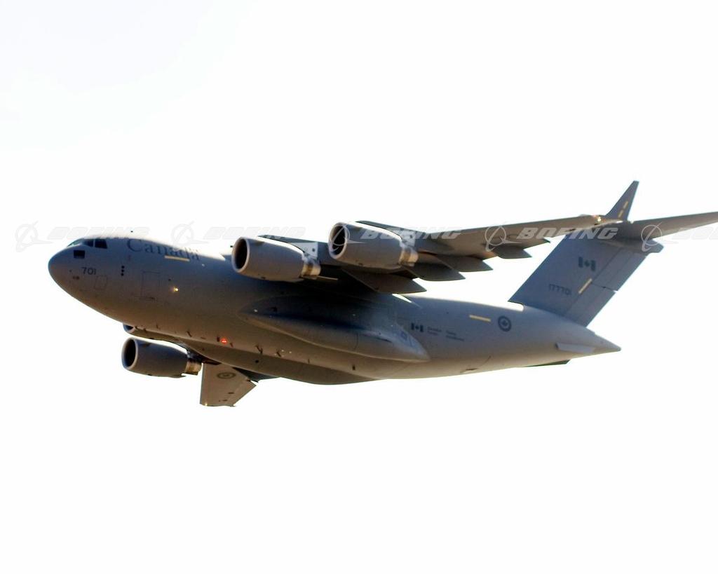 A high-wing, four-engine, T-tailed aircraft with a rear-loading ramp, the C-17 can carry large combat equipment and troops or humanitarian aid across international distances directly to small austere airfields anywhere in the world. The Royal Canadian Air Force has 5 CC-177 (C-17A) Globemaster III aircraft in their fleet.