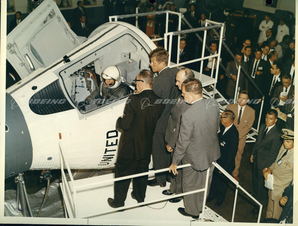 Mr. McDonnell and John F. Kennedy Visit Space Capsule and McDonnell Aircraft Corporation Factory (1962) Gemini Space Capsule