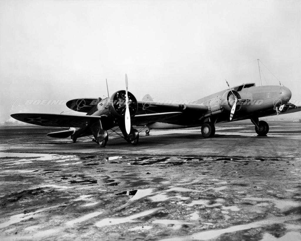 P-26A Peashooter on Airfield with Model 247 in Background