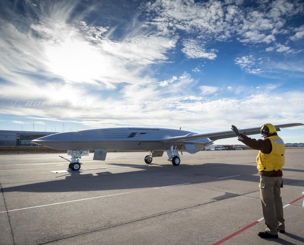 Boeing-owned MQ-25 test asset, aircraft T1, in flight