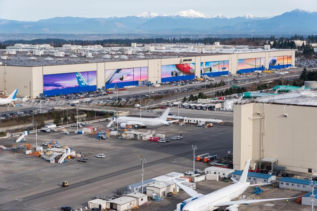 Boeing's New Livery Displayed on Hangar Doors of Everett Assembly Plant
