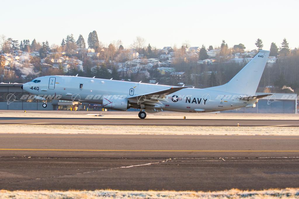 US Navy P-8A Poseidon Takes Off from Boeing Facility