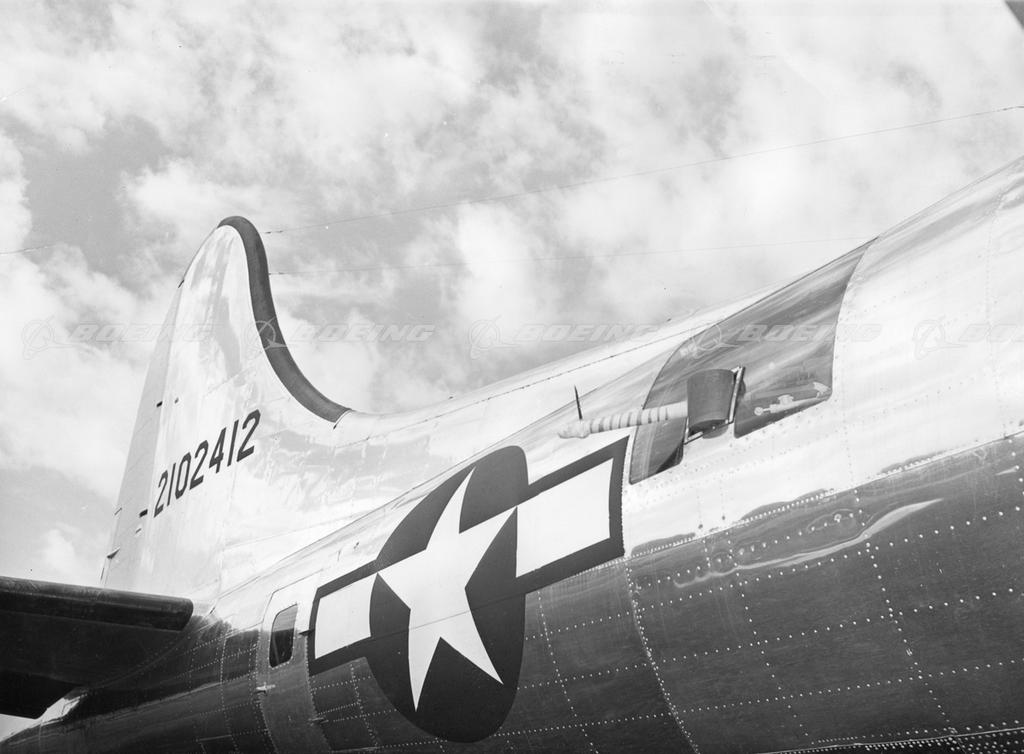 The B-17 Flying Fortress was the first Boeing airplane with the distinctive, and enormous, tail for improved control and stability during high-altitude bombing. The Fortresses were legendary for their ability to stay in the air after taking brutal poundings.