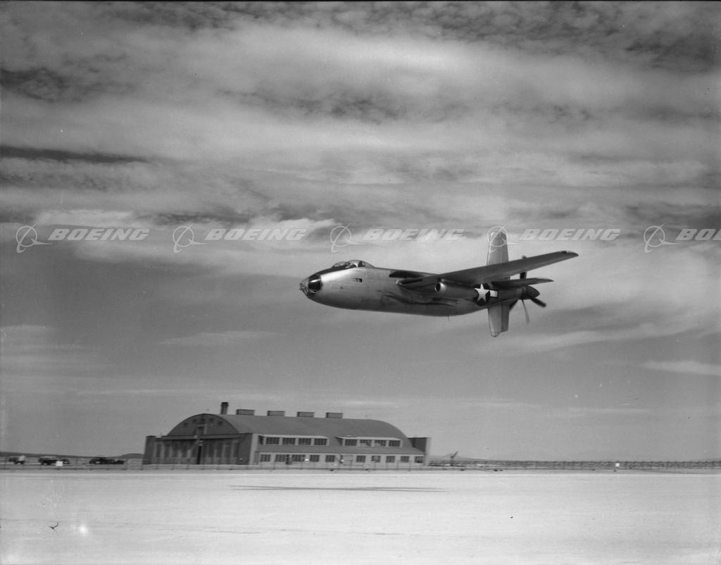 The Douglas XB-42 and the XB-43 were top security wartime programs which produced only four flying aircraft. Two engines driving tail propellers were housed in the XB-42 fuselage. The XB-43 was a jet-propelled version of the XB-42.