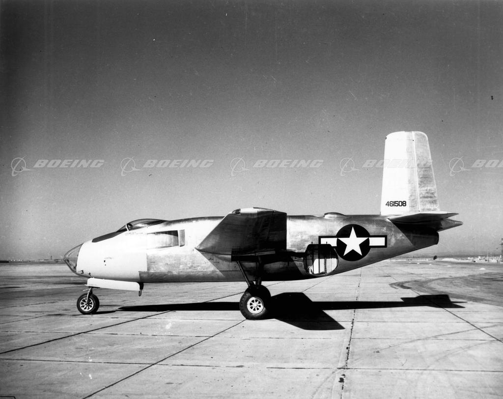 The XB-42 and the XB-43 were top security wartime programs which produced only four flying aircraft. Two engines driving tail propellers were housed in the XB-42 fuselage. The XB-43 was a jet-propelled version of the XB-42.