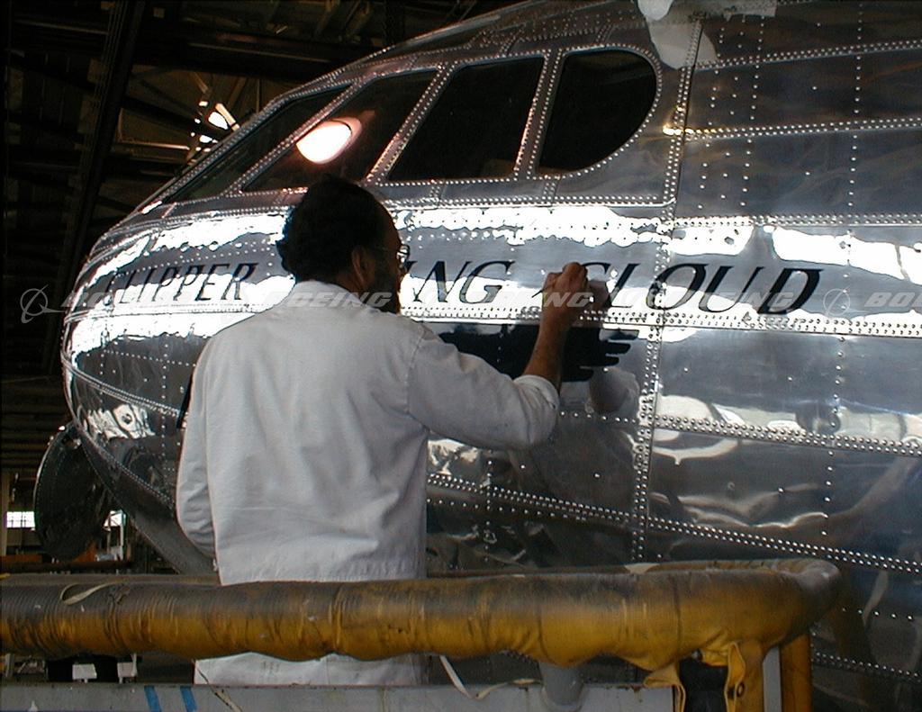 The Boeing Model 307 pressurized cabin allowed the airplane to soar (220 mph cruising speed) above rough weather at an altitude of 20,000 feet -- higher than any other transport of its time. With names like Rainbow, Comet, Flying Cloud and Apache, the Stratoliner set new standards for speed and comfort. The Boeing Model 307 circular fuselage provided maximum space for the five crew members and 33 passengers. The nearly 12-foot-wide cabin had space for comfortable berths for overnight travelers.