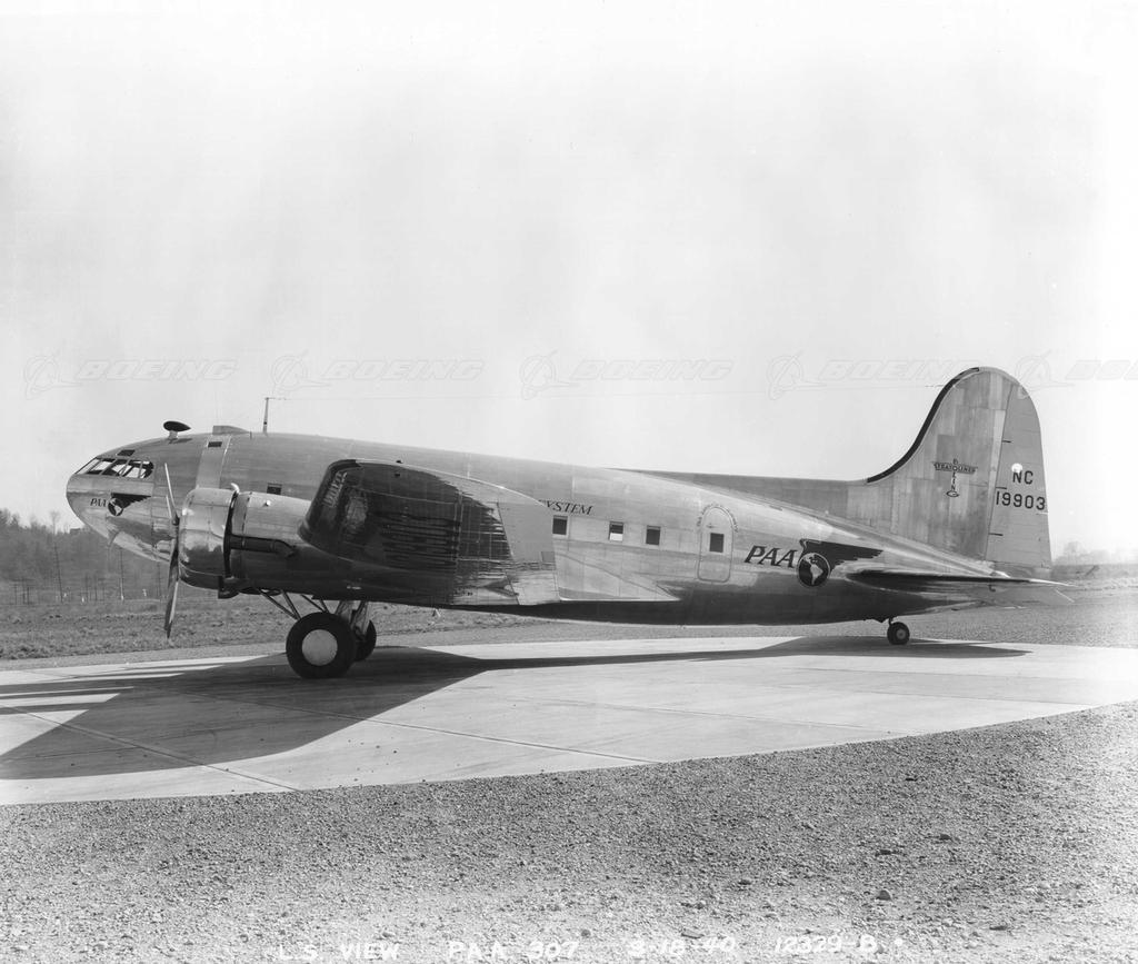 The Boeing Model 307 pressurized cabin allowed the airplane to soar (220 mph cruising speed) above rough weather at an altitude of 20,000 feet -- higher than any other transport of its time. With names like Rainbow, Comet, Flying Cloud and Apache, the Stratoliner set new standards for speed and comfort.