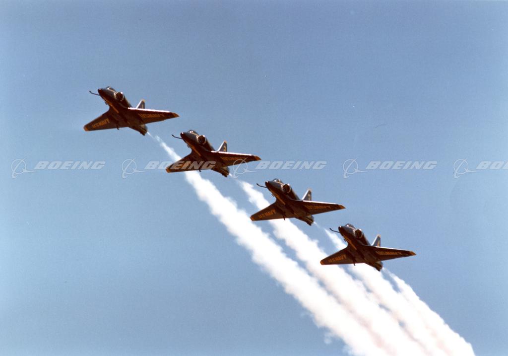 The Navy's Blue Angels flight demonstration squadron flew the McDonnell Douglas A-4 Skyhawk II from 1974 to 1986.
