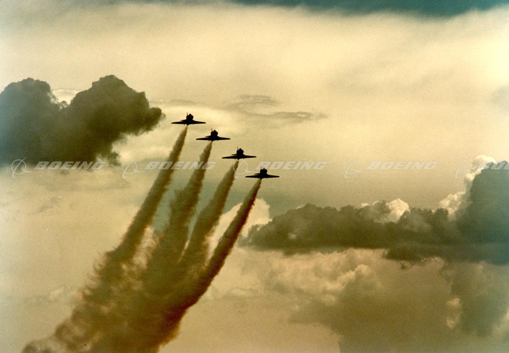 Blue Angels A-4 Skyhawks in Diamond Formation