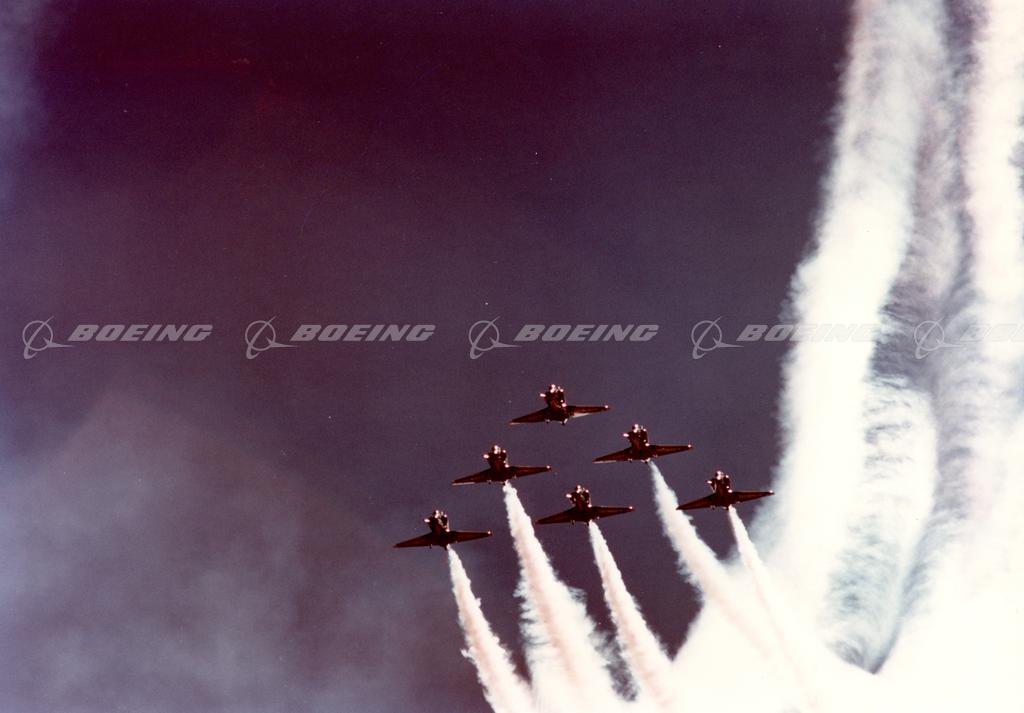 Blue Angels A-4 Skyhawks in Line Abreast Formation