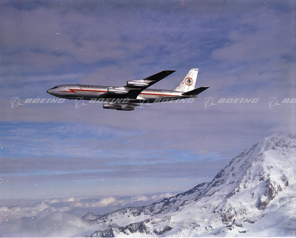 Boeing 707 American Airlines In-flight over Snowy Mountains 1963