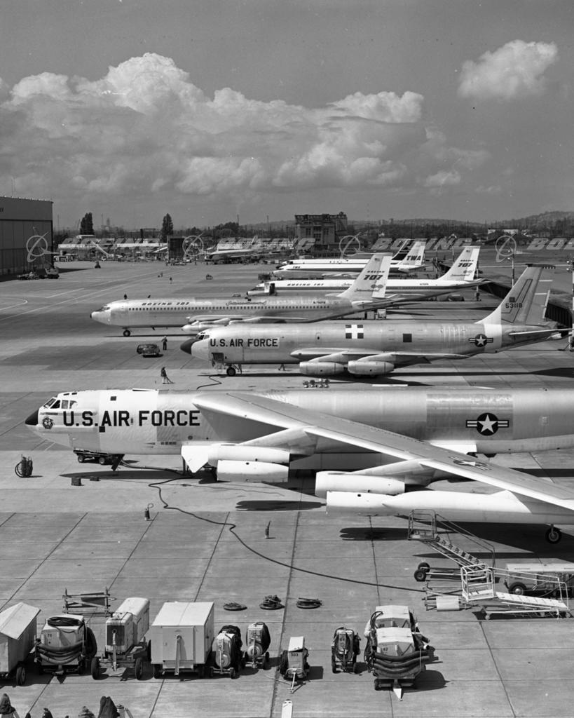 Seattle Flightline: B-52, KC-135, and 707s, May 1959
