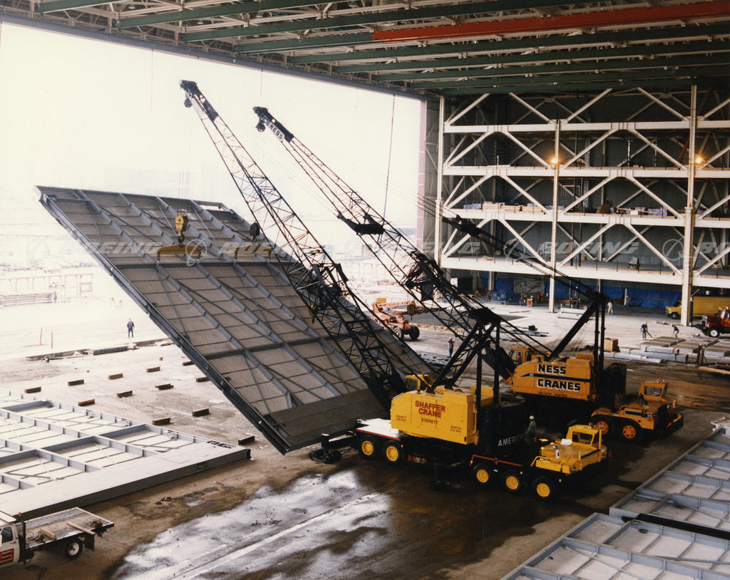 Erecting main doors in Boeing Everett factory (circa 1968)